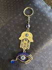 Turkish Evil Eye Keychain Blue Fatima Hamsa Hand Protection Lucky Charm Keyring