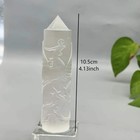 1PC Hand Carved Selenite Crystal Tower with Dragon & Phoenix