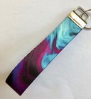 PURPLE / TEAL SWIRL KEY CHAIN WRISTLET KEY FOB WRIST LANYARD MULTI-COLOR WEBBING