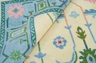 Hand Knotted Oushak Wool Area Rug Ivory Pastel Blue Green Turkish Floral Carpet