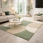 Hand Tufted Luxury Sage Green Beige Cream Geometric Rug, Modern Area Rug Carpet