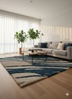 Hand Tufted Wool Rug – Modern Ivory, Blue Abstract Area Rug Living Room Carpet.