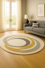 Hand-Tufted Wool Round Rug | Gold & Grey Geometric Design
