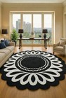 Hand Tufted Wool Round Rug | Black & White Mandala Design