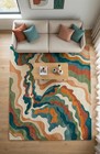 Abstract Wave Wool Rug Teal Rust Green Hand Tufted Wool Area Rug 8x10 Modern Rug