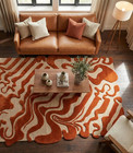 Hand Tufted Wool Rug, Rust Orange Wavy Swirl, Boho Home Decor Handmade 6x9|8x10|
