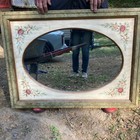 Vintage Floral Oval Framed Accent Mirror Green Beige Wall Mounted