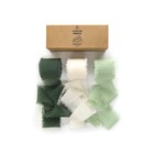 Handmade Chiffon Silk Ribbon Fringe Green & Cream 1.5" x 21 Yd Frayed Edges R...
