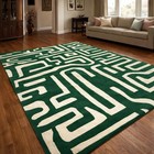 Handmade Green Wool Area Rug | Modern Labyrinth Pattern Hand Tufted Carpet