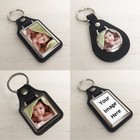 Lux Faux Leather Photo Keyring, Personalised Gift Bag Tag, Any Logo Text Badge