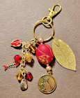 Handmade Purse Charm/Gold-Tone/Red/Leaf Dog