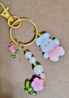 Handmade Purse Charm/Gold-Toned/Pink/Rabbit Flowers