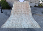 Oversized Vintage Turkish Oushak Rug 6.7x10 ft Muted Peach Ivory Wool Area Rug