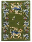 Green Tiger Wool Rug Hand-Tufted Oriental Carpet with Floral Border Carpet Rugs