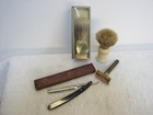 Vintage Shaving Brush & Razor Stand Plus Gillette Shaving Kit With Leather Bag