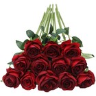 12PCS Artificial Flowers Fake Roses, Realistic Velvet Long Stem Red Roses Bouque
