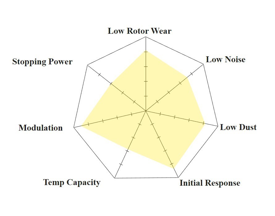 - Gentle on rotors for extended pad life
