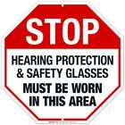 Hearing Protection And Safety Glasses Must Be Worn In This Area Sign, OSHA Sign,
