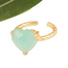 Heart Gemstone Ring Chalcedony Chekar Cut Gold Plated Prong Set Adjustable Ring