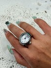 Silver Tone Statement Cocktail Ring Watch Face Fashion Metal Round Size 8