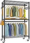 3 Tier Rolling Garment Rack Heavy Duty Adjustable Metal Clothing Rack W/ Side