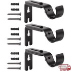 3 Pcs Curtain Brackets, Black Adjustable Curtain Poles Brackets, Heavy Duty Rods