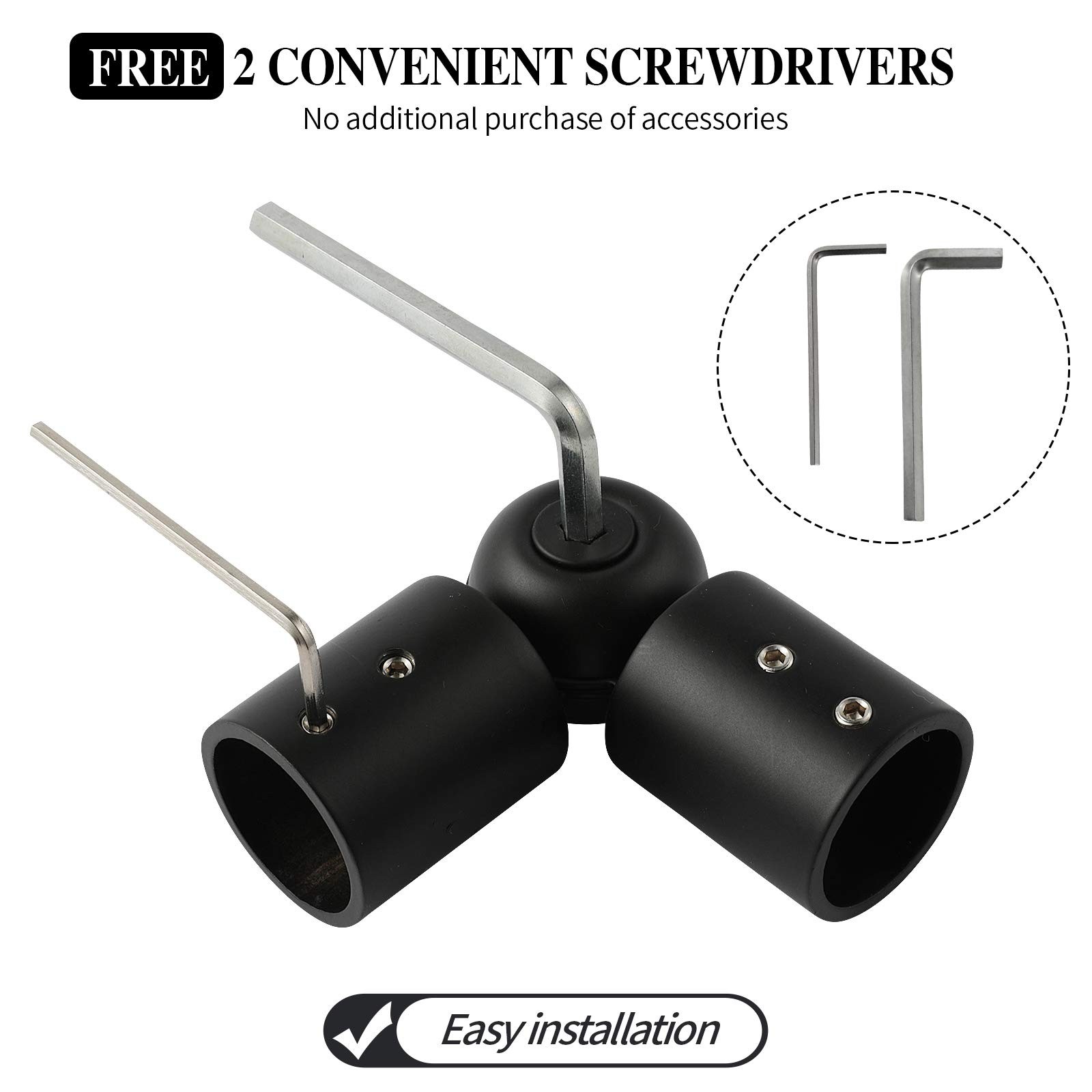 Angle adjustment to meet your needs, from 90 degrees to 180 degrees.The screw in the middle is for fixing the corner connector, and the 2 screws on both sides are for fixing the curtain rod, firm and strong.