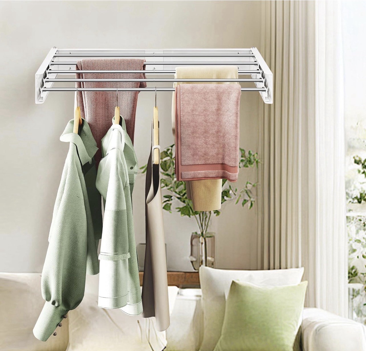 This heavy-duty indoor outdoor clothes drying rack is a space-saving, wall-mounted solution for adults looking to efficiently dry their clothes. Made of iron and with a capacity of 40 lbs, it features adjustable and collapsible arms for easy storage when not in use. The rust-resistant material ensures durability, while the sleek design adds a touch of style to any home or garden. With a length of 32 inches and a weight of 4 lbs, this foldable and adjustable clothes drying rack is a practical and convenient addition to any household.