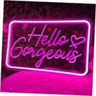 Hello Gorgeous Neon Signs for Wall Decor, Hello Beautiful Pink LED Neon Light...