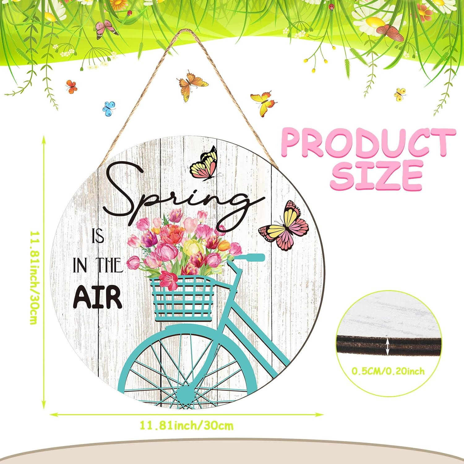 Exquisite Design: this hello spring sign features delicate workmanship, is designed with bicycle pattern, cartoon words, flowers, butterflies and other cute elements, full of spring atmosphere