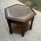 Hexagonal Wood & Glass Side Table, Medium Brown, Living Room, Indoor