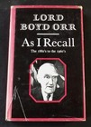 Lord Boyd Orr : As I Recall UK Hardback 1st Ed. 1966 - With Letter From His Wife