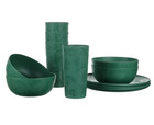 12-Piece Plastic Etched Holly Dinnerware Set, Green