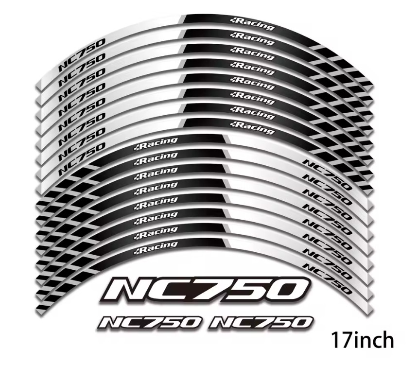 Honda NC 750 NC 750X Wheel Rim Sticker Decals Set 17" Front & Rear Black Grey