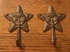 Cast Iron Sun Face Star Wall Hooks-Lot of 2-Rustic Farmhouse Decor