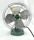 Vintage Art Deco Wizard Husky 10" Desk Fan Green Metal Model 1250R-Tested Works