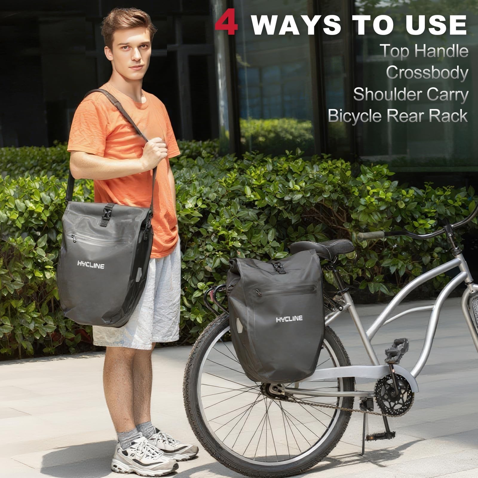 Hycline Waterproof Bike Panniers Bag: Bicycle Rear Rack Bags 28L Large Capacity with Dual Carrying Handle and Shoulder Strap for Commuting Cycling Traveling Touring Shopping - 1PC