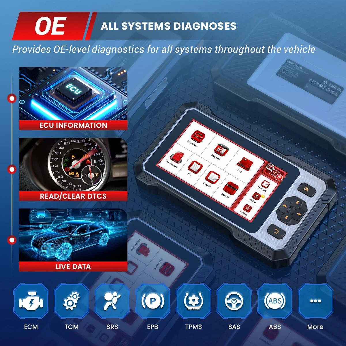 4. Electrical System: Including Centralized control system for engine and power transmission, Chassis integrated control and safety system,Intelligent body electronic system,Communication and information / entertainment system. Read and erase codes for all available systems, turn off MIL light (Indicator light), display live data in text, graph & analog for easy data review.
