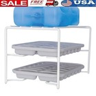 2-Tier Ice Cube Tray Holder Organizer Rack White Plastic Storage Caddy for