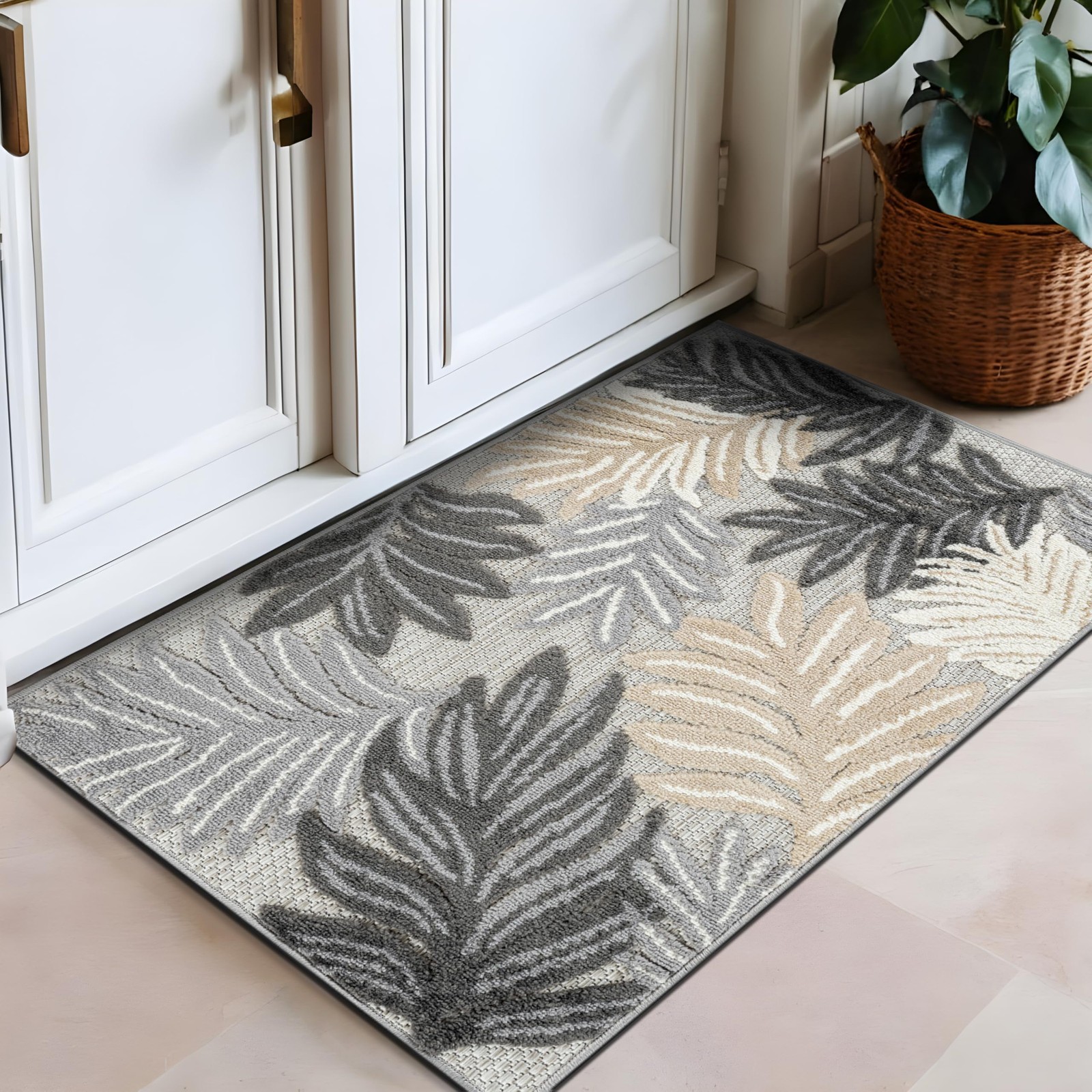 Indoor/Outdoor High-Low Textured Area Rug, Botanical, Easy-Clean Entryway Pat...