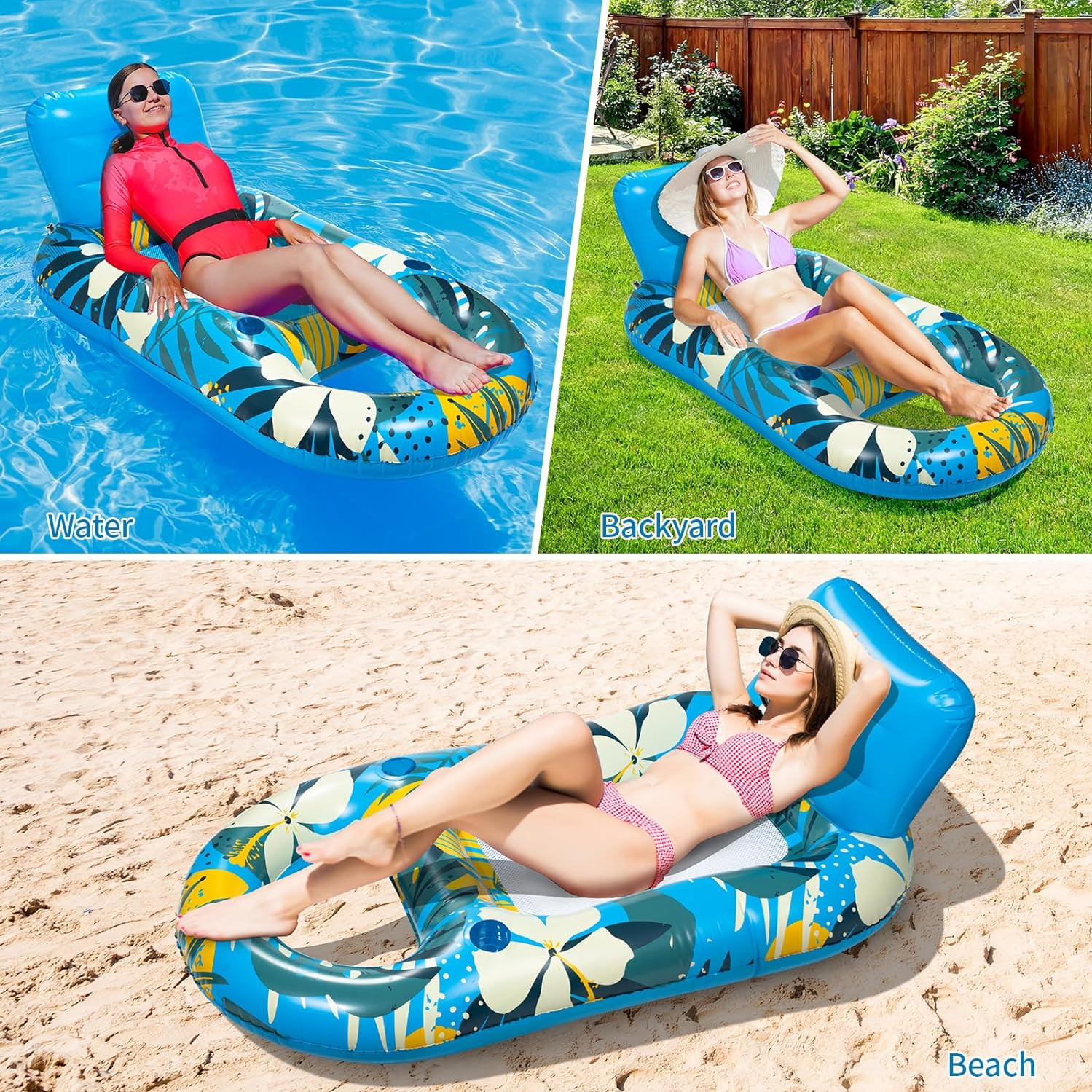 - Cool Foot Area: There's also a cutout at the bottom of the adult pool float lounger. When you want to cool off your feet, you can put your foot and leg in the water for cool and splashing fun.