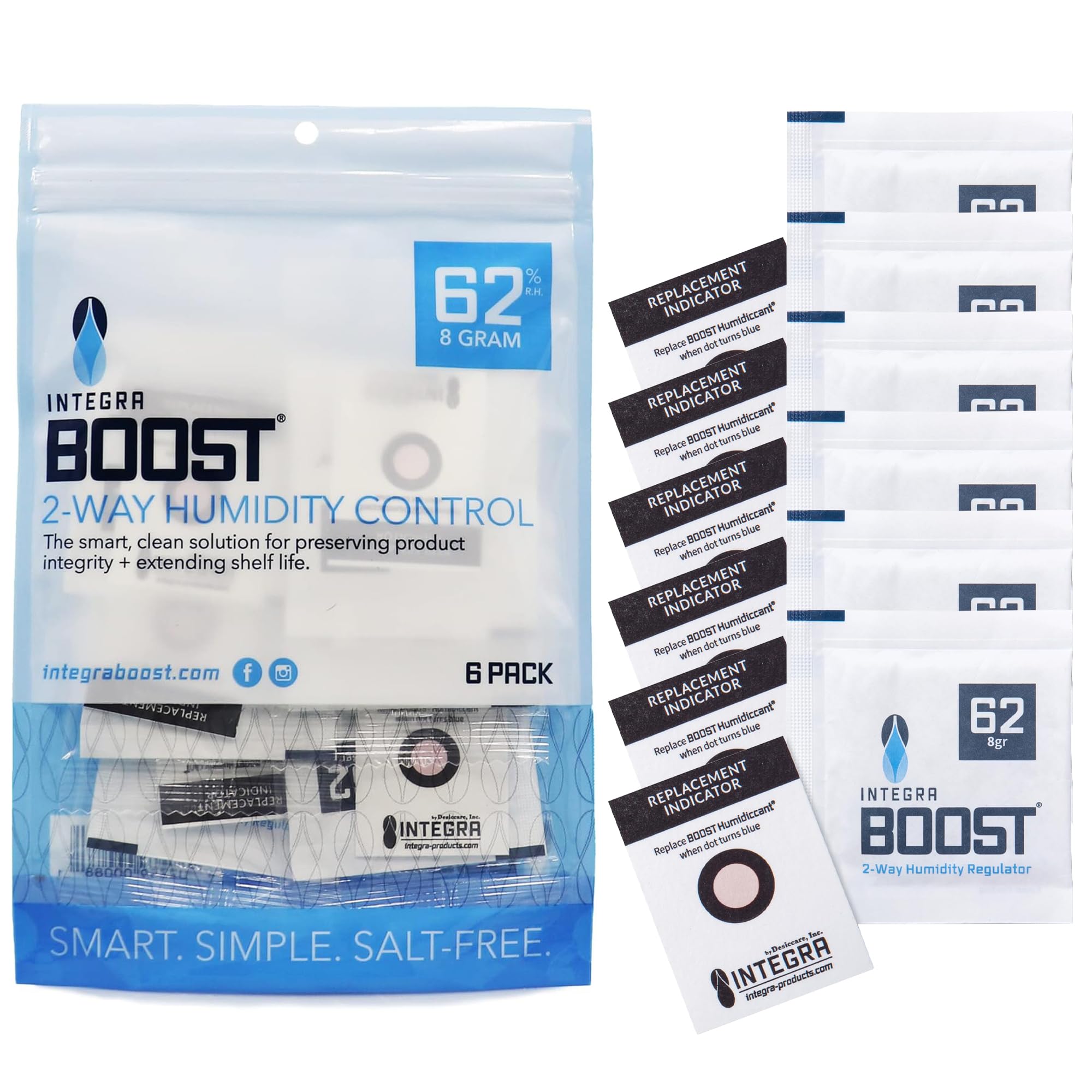 PACK OF 6: This item contains 6 Boost Packs, each with individual overwrapping and a Humidity Indicator Card inside the overwrapping, and comes packaged in our signature blue resealable bag.