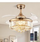 42" Invisible Ceiling Fan Crystal Chandeliers Remote Retractable Blade Fan Light