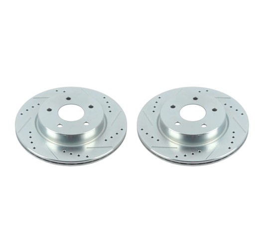 Powerstop Brake Disc -- Power Stop drilled and slotted rotors provide a bolt-on upgrade for improved brake cooling and performance. Precision cross-drilled for maximum cooling and maximum performance during extreme conditions; rounded slots sweep away gasses, dust, and moisture to keep a clean friction contact patch on the rotor surface. Silver zinc dichromate plating resists rust and corrosion. With a direct OE fit, there are no special modifications needed.