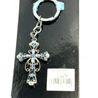 Jeweled Cross Key Chain Blue, Clear and AB Stones on Silver Toned Key Ring New