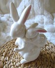VTG Standing Ceramic Easter Egg Figurine Bunny Family Approx 5x 3.5”