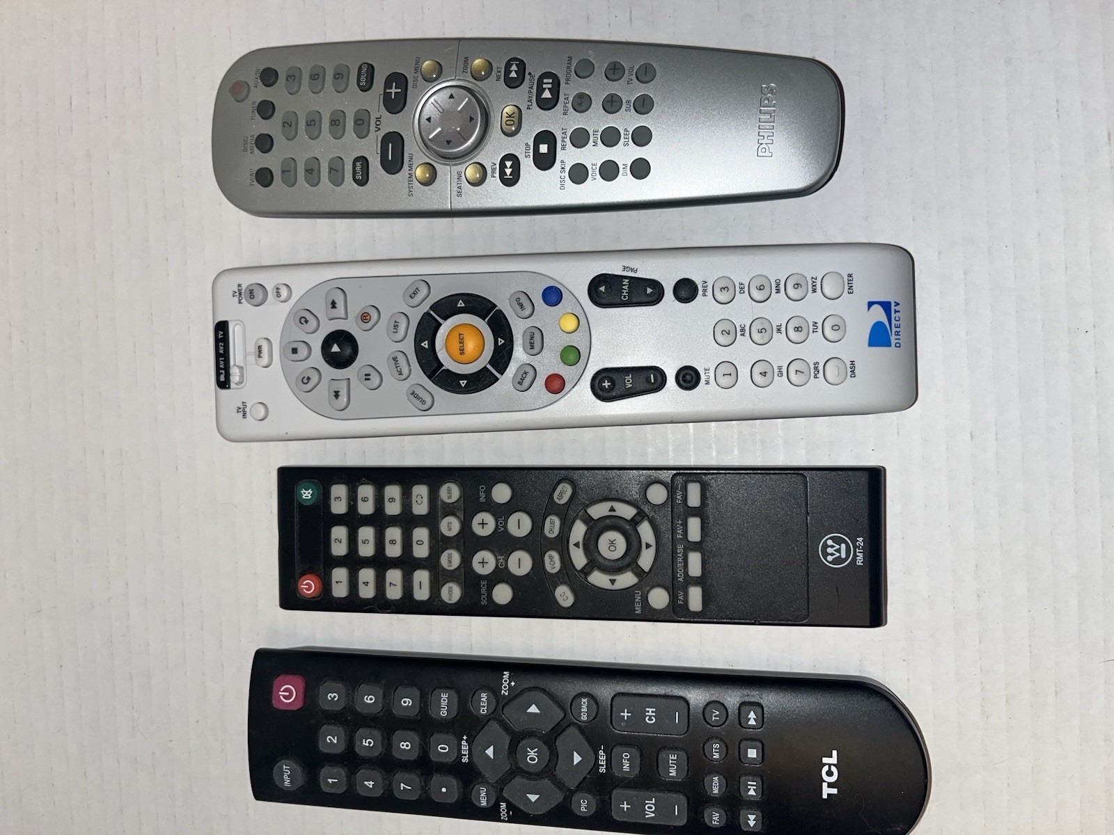 Junk Drawer Lot - 4 Remote Controls All Tested And Working Philips Direct Tv TCL