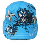 Academy Fits Cadet Army Cap Blue One Size Embroidered Distressed Rhinestonme