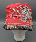 VTG KBETHOS Cross Hat Women Red Rinestones Y2K Retro Adjustable Strap Back