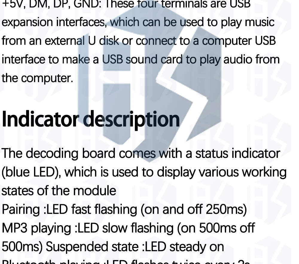 5>. Bluetooth playback: LED flashes two times every 2S